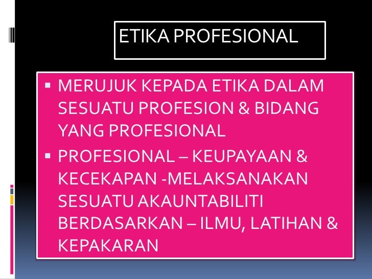 Sebagai profesional di dunia kerja kamu harus selalu mengingat etika yang pantas agar dapat menjalin hubungan yang baik dengan seluruh bagian organisasi. AMNA BT MD NOOR. Dalam profesi tertentu dapat ditambahkan aturan etika khusus yang sesuai dengan profesi tersebut.
